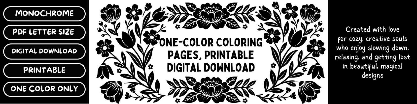 Hi! Thank you for stopping by. I enjoy creating magical, easy-to-color pages designed for relaxation, cozy moments, and mindful breaks. I hope you enjoy them!