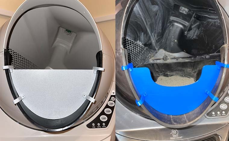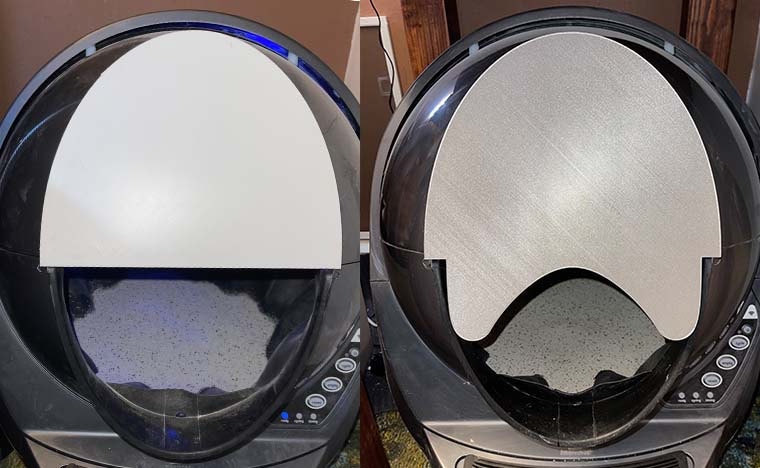 In December 2020 I got a Litter-Robot for my three kitties, Oliver, Linc and Aggie, and one of them, ahemLincahem, decided he was IN LOVE with the LR, so much so that he was jumping into it when it cycled so he could bat his poops and pees as they slid down into the waste drawer. I wasn't so keen on that so I found a solution that I now call a Full Shield that covers the top of the opening so when the LR is cycling it helps keep your kitty out when the LR is upside down.