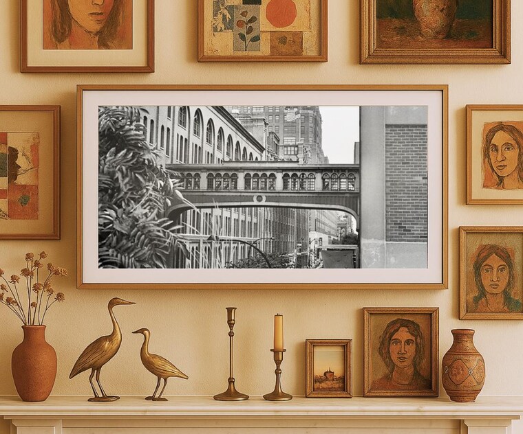 A mantle is a map. Make your walls tell your story with personal, place-focused digital wall art.
