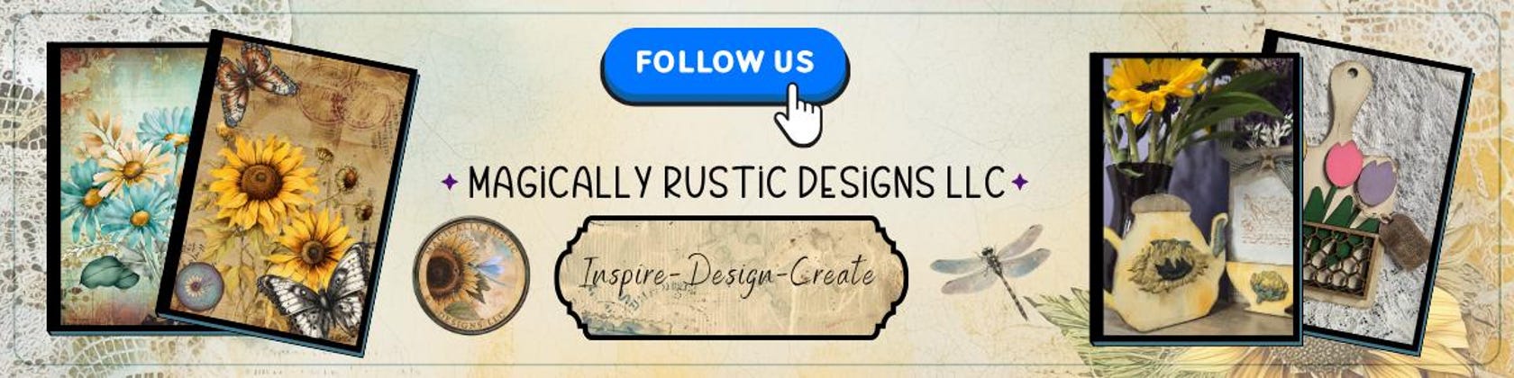 Hello. I'm Renee owner of Magically Rustic Designs LLC. Thanks for stopping by my shop. I'm a graphic designer that enjoys creating a variety of crafting supplies for the industry. All my products are made with US made materials.