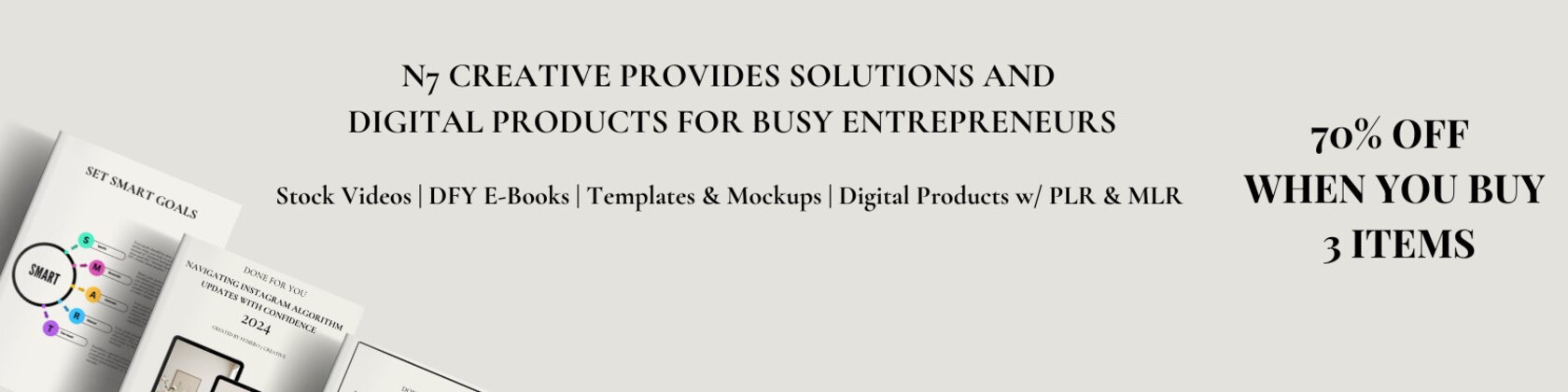 At N7 Creative, we specialize in Done For You Digital Products For Resell with MRR and PLR and Aesthetic Videos that help you maintain a consistent presence across your chosen platforms and enhance your online earnings. We understand that as an entrepreneur, your time is valuable, and the demands of branding and growing your business can be overwhelming.