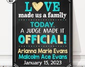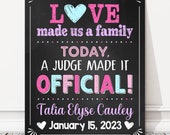 5 out of 5 starsI can’t give this enough stars!!! 100000 stars!! I was able to message the shop and work with her to change the color scheme to match our adoption outfits! And she was quick to send a proof and final file!!! It looked amazing for our special day!!! And will go on our wall as decor! Love it!!!