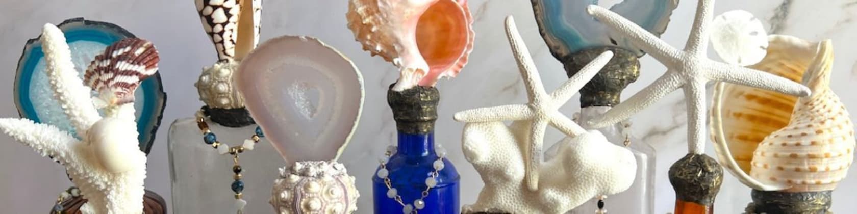 I started my shop to share my shell bottles. I am very passionate about them and love the process of creating them. Many of the bottles used are vintage and make the pieces rare and one of a kind. I mostly collect them from antique and collectible shops and the hunt is part of the fun. It is stated in the description when the bottle is vintage as not all of the bottles used are old.
