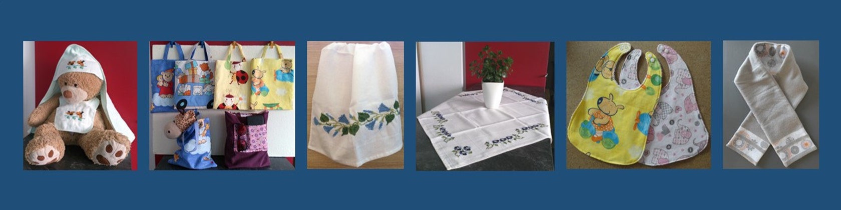 De manière occasionnelle, sur demande, je réalise des travaux de couture (changement de fermeture éclair, confection de housses pour coussins et banquettes...) ou des articles conformes au souhait du client (ensemble naissance : gigoteuse-plaid-bavoirs, chemin de table...)