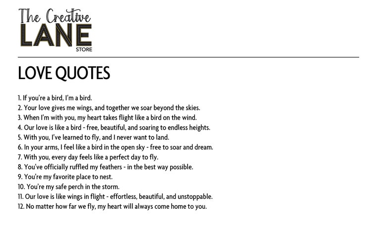 We offer a variety of love quotes, but If you have a quote in mind we are happy to customize. -