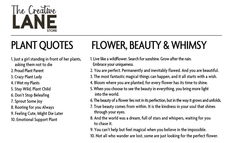 We offer quotes about flowers, plants and whimsy, but If you have a quote in mind we are happy to customize. -