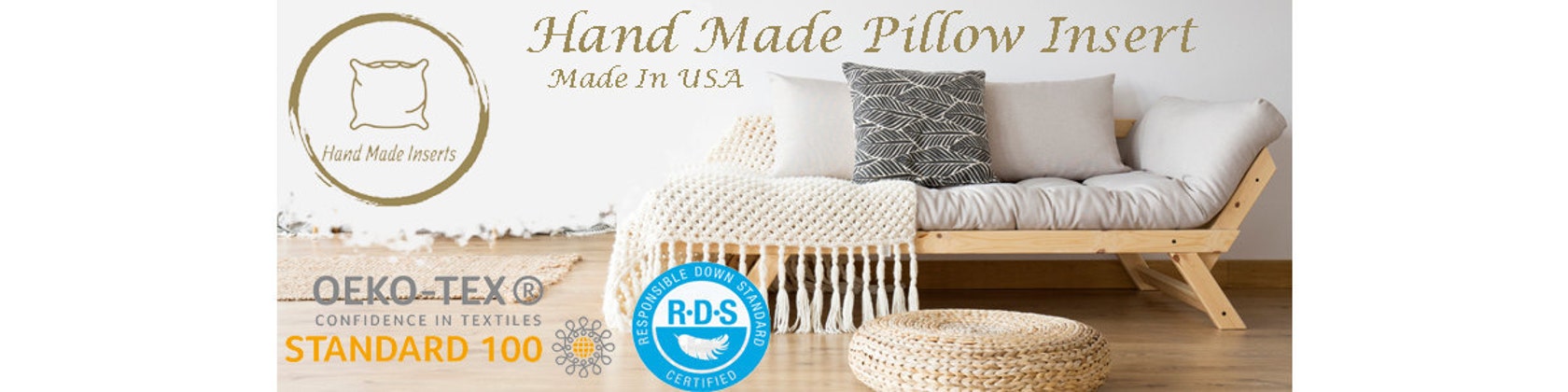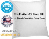 Relleno de almohada de plumas de 30 x 50 cm, algodón de 233 hilos, hecho a mano en EE. UU.