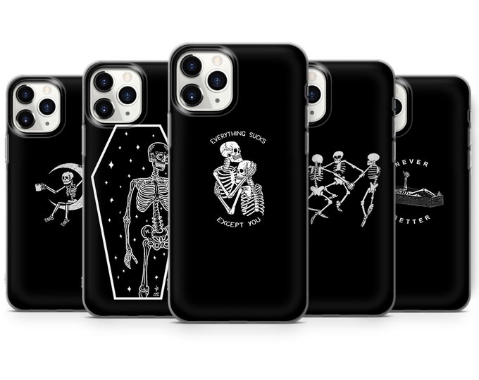 Skeleton Phone Case Black Gothic Cover for iPhone 17 Pro Max, 16e, 15, 14, 12 & Samsung S25 Ultra, S24 FE, A56, Pixel 10 XL, 9a, 8