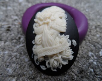 Cameo Cabochon Mold, Gothic Skeleton Lolita lady , Silicone push mold for resin, polymer clay, sugar craft- food safe, non toxic