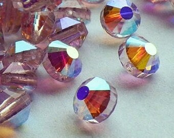 非常に希少なヴィンテージ スワロフスキー ビーズ、第 41 号、6 x 7 mm アクアマリン、オーロラ ボレアール仕上げ、クリスタル ビーズ 20 個