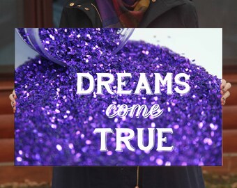 Home decor, Poster, Dreams Come True, Inspiration, Digital print, Original gift, Present, Wall Art, Canvas poster, Purple, Glitter