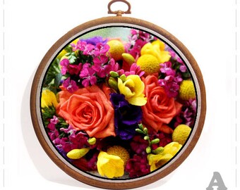 5 styles flower hoop art Photo decoupage home wall decor nature gift handmade craft colorful textile fabric bright frame girl woman romantic