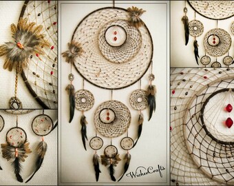 huge dream catcher light brown dreamcatcher dark brown highly unusual red beads Big Dreamcatcher "Anansi"