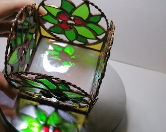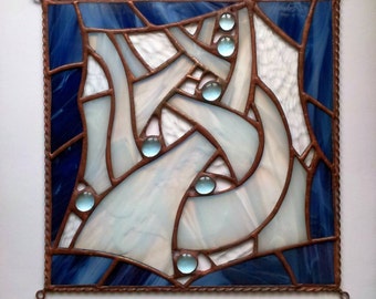 Abstract Stained Glass Panel. Pendant. Mini-vitrage. Winter home decor. Handmade. DizArtEx.