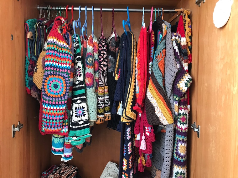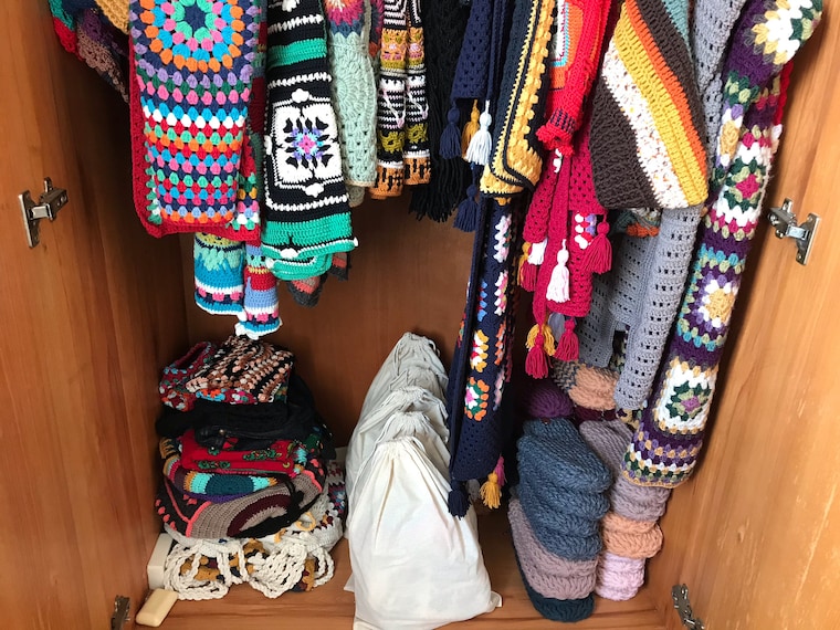 (That is my mom's friend) On crochet and knit products.