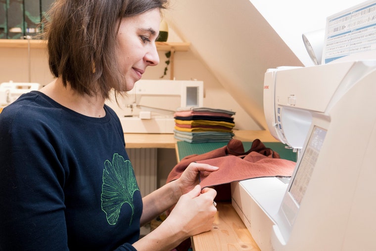 Tous les designs sont créés dans mon studio mansardé et caractérisés par des tissus naturels, des motifs simples et des coupes confortables.