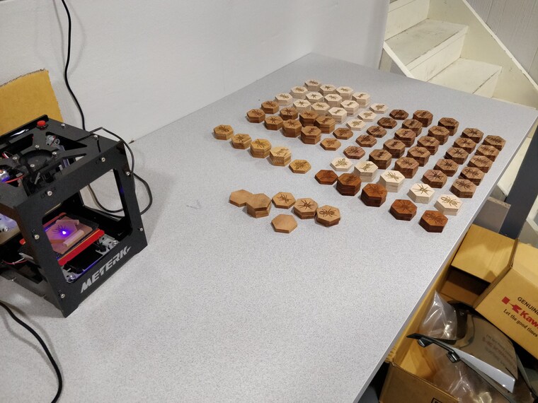 Laser etching 154 hexagons in my lab -
