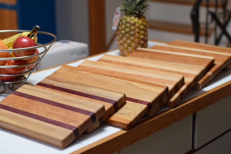Christmas cutting boards. Maple, cherry, hickory, and purple heart.