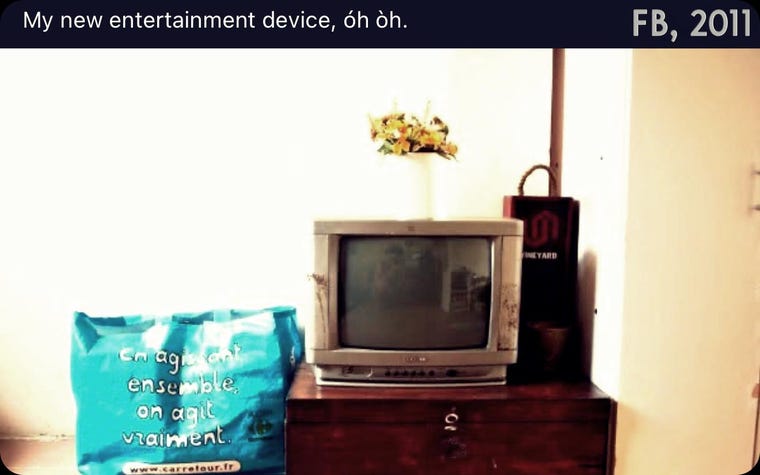 To this day, the primary materials of this handcrafted TV are actually those days of constantly moving between rental rooms across Saigon fifteen years ago. A student from the countryside, lugging around a blue mesh clothes bag, a brownish-maroon wooden chest from a friend, and a yellow faux flower vase that looked so out of style. I even carried a TV under my arm—one I barely watched. I mostly kept it on just to hear a human voice in the silence of those youthful days, which weren't exactly happy, or maybe they were happy enough—I can't quite remember.