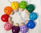 Con el tiempo, puede notar un desgaste normal en sus juguetes de madera (es decir, astillado de pintura, arañazos, etc.). Considere cubrir sus juguetes con un aceite de madera seguro o cera de abeja según sea necesario para ayudar a minimizar el desgaste. Golpear / lanzar / hablar de juguetes de madera aumentará el desgaste.Mientras que todos nuestros juguetes pintados a mano (* tenga en cuenta que algunos artículos están teñidos y específicamente lo dirá en el listado. Si no está seguro, no dude en contactarnos) están pintados y sellados con una pintura a base de agua no tóxica y sellador de madera, no están destinados a niños que todavía están hablando cosas.Por favor, siempre supervise a sus hijos cuando jueguen e inspeccione todos los artículos cada vez antes de jugar.