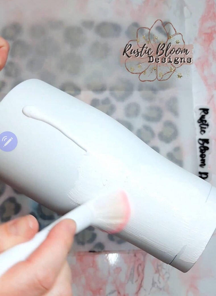 Applying Paint, primer, and glue on tumbler before adding glitter.