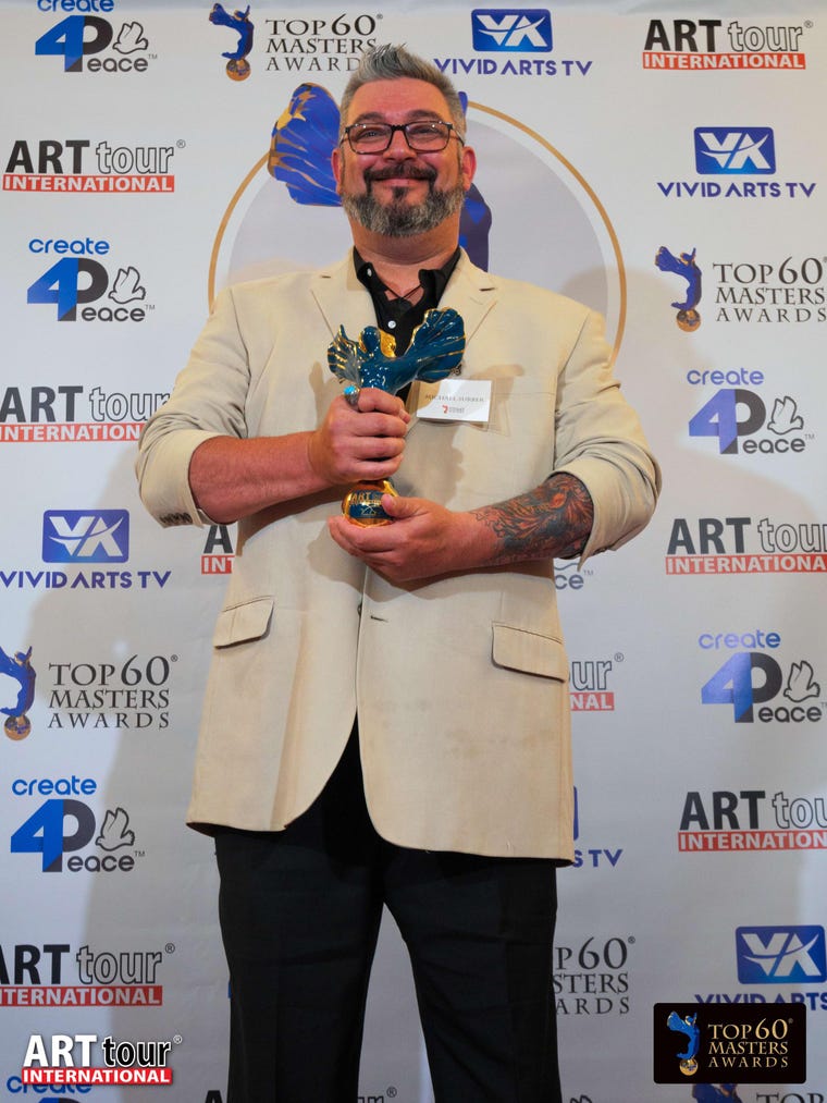 Sir Michael W. Surber is an award-winning Ohio based artist known for his paintings. From a young age, he has always had a desire for art. Michael graduated college with a degree in Graphic Design. Michael is also member of the Dayton Society of Artist in Ohio, Zanesville Museum of Art, ZAAP Art Gallery, Licking County Art Association, Ohio Art League, and the Springfield Museum of Art. His work has been in galleries all around the world and had his work curated by Anthony Fawcett (curator for Andy Warhol and John Lennon). Michael’s artwork has been described by collectors and curators as poetic, essential, experimental, primal, colorful, and storytelling. A curator from Milan, Italy even went so far compare his technique and creative process as “similar to Master Picasso”. Michael was honored with the Top 60 Masters Award from Art Tour International in Ferrara, Italy and was Knighted by Duke Dr. Thomas A Louis of Gerani, Greece. Michael has his own fashion line, coffee, and seasoning now among other items as his business keeps growing.