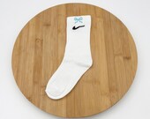 4 von 5 SternenOkay, ich habe nur deshalb 4 statt 5 Sterne gegeben, weil die Größentabelle nicht stimmt. Bei den Damengrößen stand, dass Größe S 4-6 entspricht. Ich trage Größe 5 und die Socken sind zu klein. Das Geld ist also futsch. Wenn ihr euch ein Paar kaufen wollt, kontaktiert bitte vorher den Kundenservice. Ich wünschte, ich hätte es getan. Ansonsten fand ich die gestickte Schleife über dem Nike-Logo aber wirklich süß.