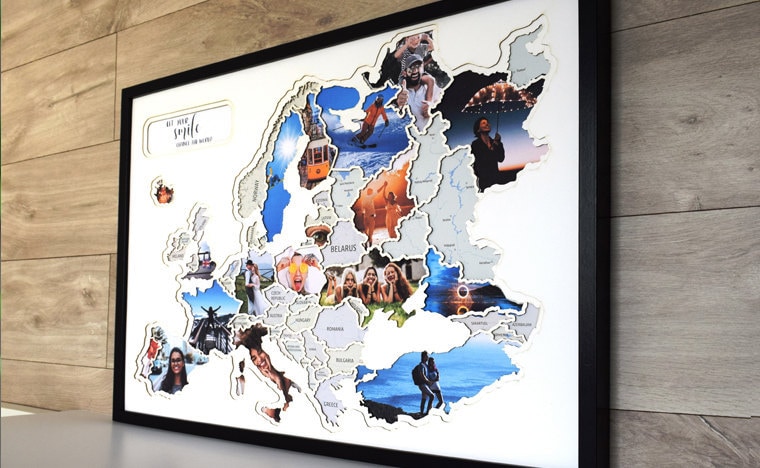 Photo Map of Europe - Travel Memories on a Photo Map - Photo Collage Map - Photos Trip Map - Best Birthday Gift -