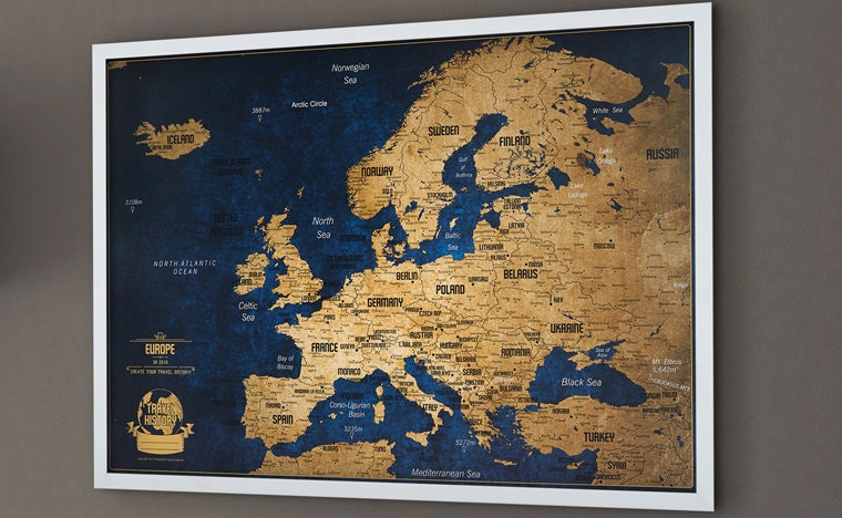 Push Pin Map, Map of Europe with Pins, Original Birthday Gift for Friend, Christmas Gift, Best Gift for Travelers