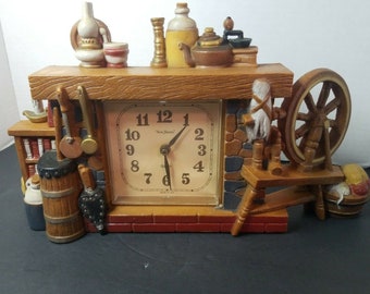 Vintage Burwood Wall Clock Plastic Kitchen Canisters Vegetables 1970s