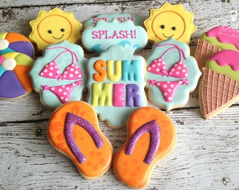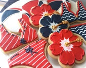 Plants and Edibles Baked Goods Cookies pool party decorated cookies custom favors cookies party beach ball hibiscus bathing suit july 4th patriotic bikini memorial day