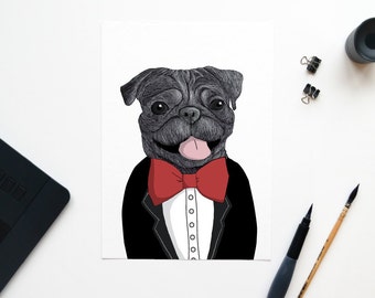 Chic Pug map with red bow A6