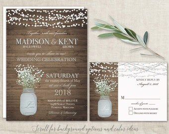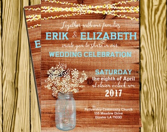 Rustic Wedding Invitation Printable, Country Wedding Invitation, Digital file, Printable, wedding invitation suite, Mason Jar Wedding