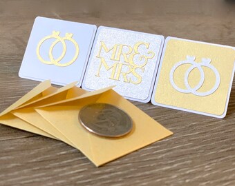 Teeny Little Greeting Cards (Set of 12) Mini Save the Dates, Engagement, Bridal, Wedding Announcements ~ Gold, Pearl & White