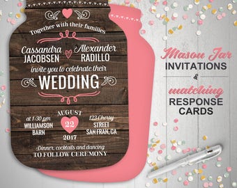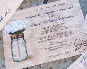 Rustic Wedding Invitation, Mason Jar Invitation, Mason Jar Wedding Invitation, Rustic Invitation, Wooden Rustic Wedding Invitation