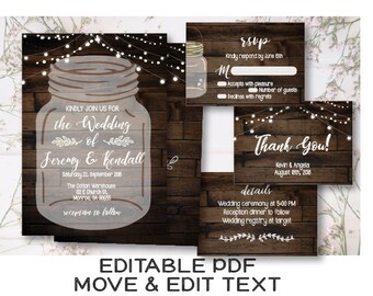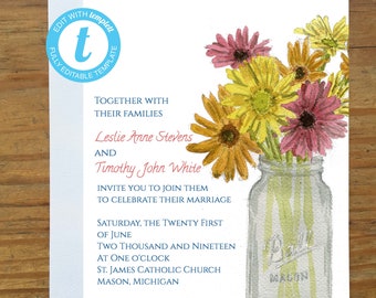 EDITABLE Mason Jar Wedding Invitation, Printable Invitation, Instant Download, Downloadable PDF DIY