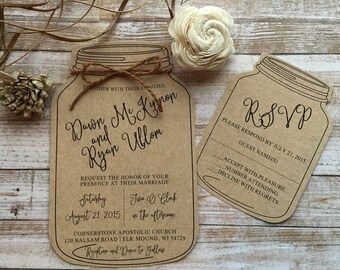 Mason Jar Wedding Invitations, Rustic Wedding Invitation, Wedding Invitations, Barn Wedding, Custom Wedding Invitations, Deposit only!