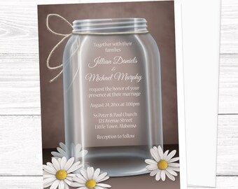 Mason Jar Wedding Invitations, Rustic Daisy - brown with floral design - Printed