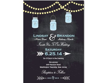Mason Jar Wedding Invitation DIY PRINTABLE Digital File or Print (extra) Chalkboard Wedding Invitation String Lights Wedding Invitation