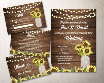 Rustic Sunflower Wedding Invitation Printable Country Mason Jar Barn Wedding Suite Fall Wedding invitation set