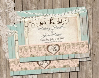 Rustic Mason Jar, Save the Date, Lights, Mint, Lace Save the Date, Digital File, Printable, 4x5.5