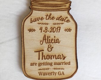 Laser Engraved Mason Jar Save The Date Magnet