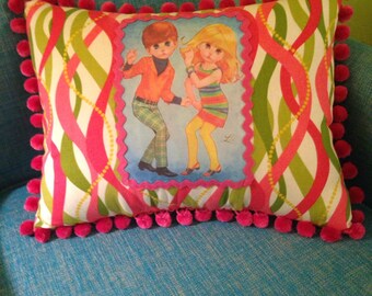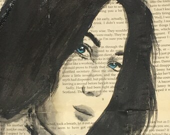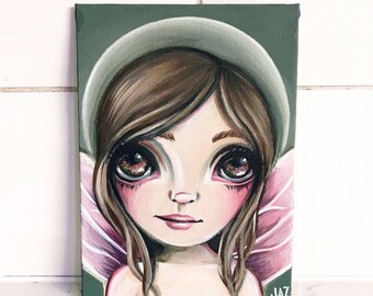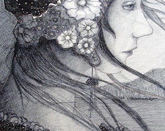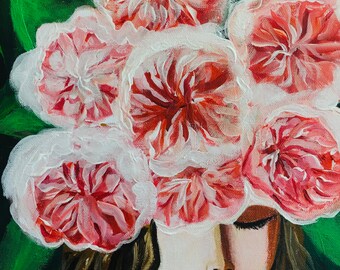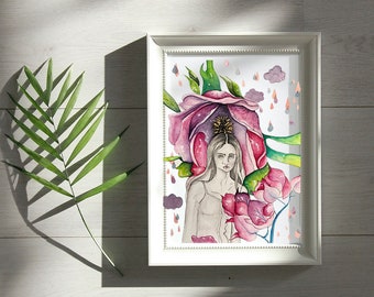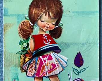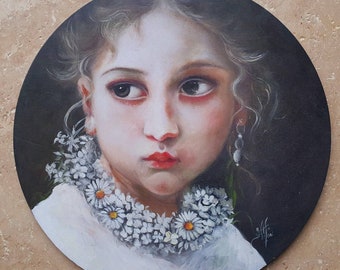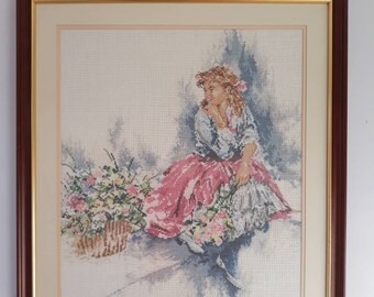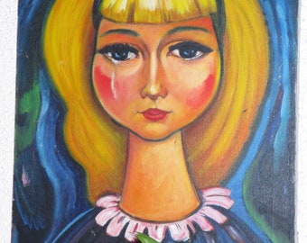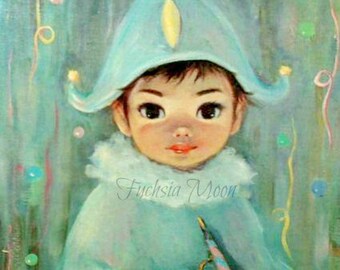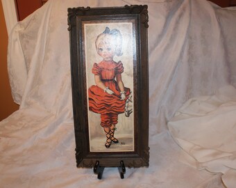 Vintage MAIO Framed Harlequin Big Eyed Girl With Flowers Art Print