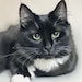 Original Black & White Cat Painting: Acrylic Kitty Portrait, 6x6"