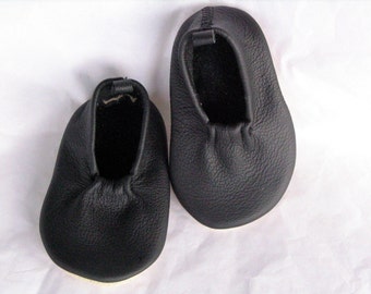 The best shoe for a baby is a soft shoe and these moks are super soft! The uppers, inside sole and exterior sole are made from leather. The mok has an elasticized top for comfy fit and makes it harder for baby to kick off. Then when you are holding baby, everyone will see the cute cutout on the bottom of the foot. Please measure your baby's foot from heel to toe to get the correct size.