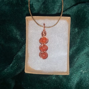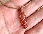 Single dainty fire agate crystal pendant necklace made with copper wire. Pendant comes with an adjustable cotton cord. Necklace is adjustable from a maximum of approximately 26 inches to a minimum choker length of approximately 14 inches.