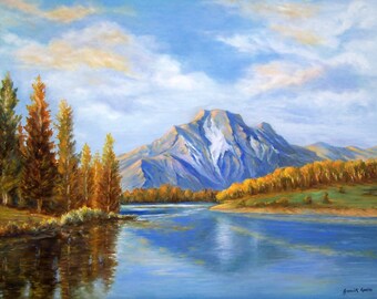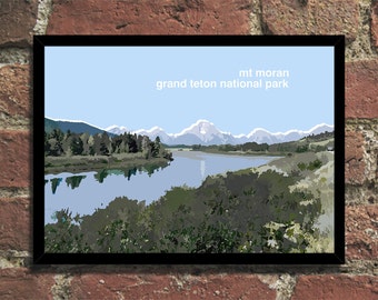 Vintage Color Lithograph Print - Mount Moran - Calendar Top Salesman Sample 8x6