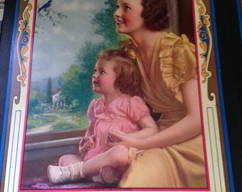 Vintage Color Lithograph Print - Baby Bath Time - Calendar Top Salesman Sample 8x10