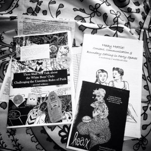 In its purest form, this zine is about my recollections on grappling with concepts of guilt and innocence, good and bad, right and wrong, and the separation between the essential parts of a human being and the actions that they take. I have traveled a path from being indoctrinated to have faith in the US legal system to moving toward believing in the speculative future of prison abolition; this zine is my attempt at showcasing the resources, ideas, workshops, individuals, and conversations that helped me along during that journey. While taking a retrospective look at these influences that helped to change my perspective, I realized that my experiences as a survivor of childhood abuse, domestic violence, and sexual assault, along with intergenerational trauma and my sobriety from alcohol have all had deep effects on this process. My interest in political issues, interpersonal relationships, and questioning dominant narratives all helped me to evolve from a person raised to believe wholeheartedly in punishment into a person who believes in centering personhood, empathy, and the right to be able to make up for one’s mistakes.