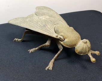 Vintage Fly Cast Iron Figural Match Safe Holder Metal Insect Bug Figurine